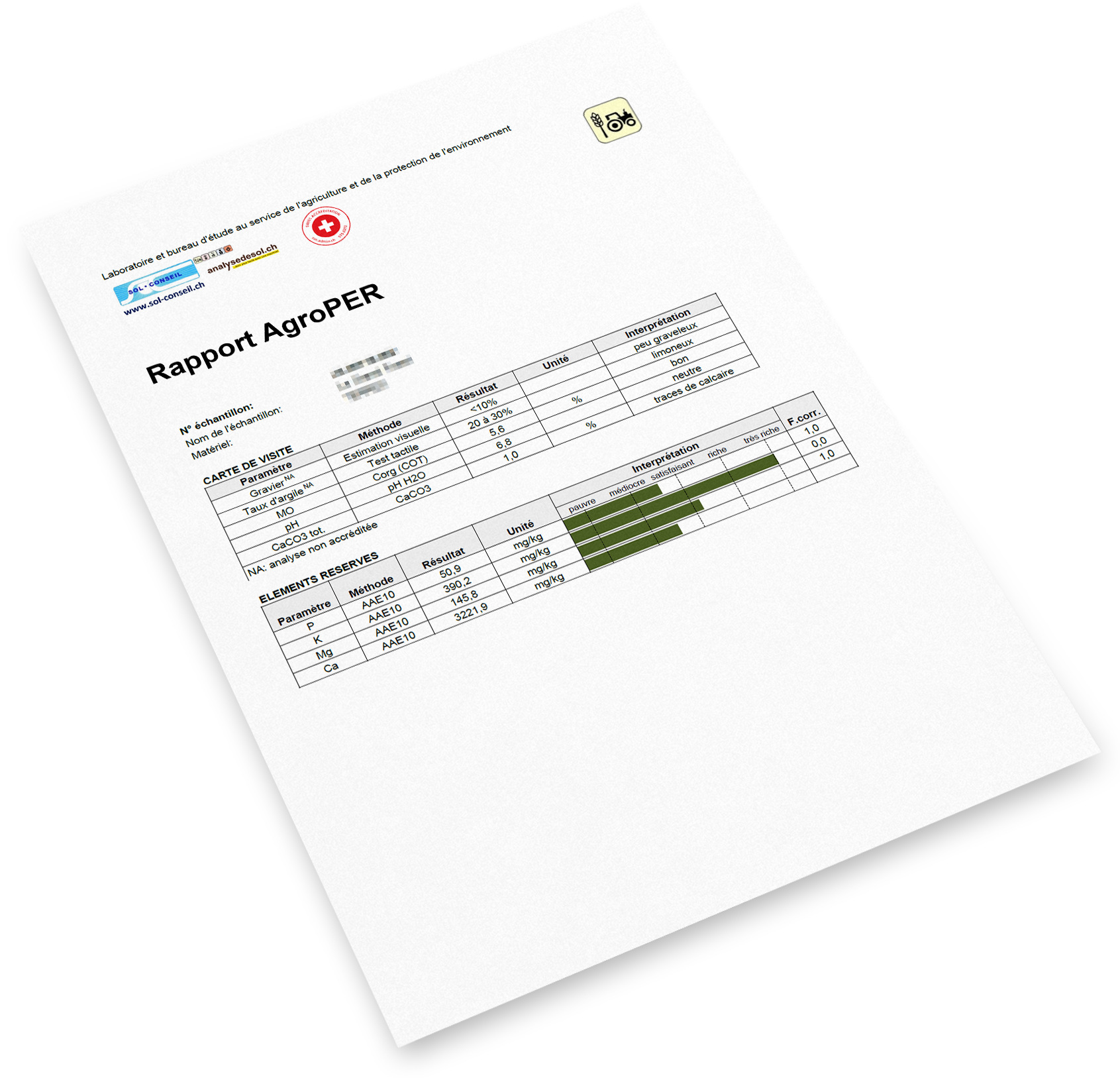 L'analyse CombiPER est synonyme de rapport optimal entre le prix et l'étendue des prestations. La teneur en humus n'est pas seulement mesurée de manière analytique, elle est même déterminée au moyen de deux méthodes différentes. On obtient ainsi une image de la santé du sol qui est à la fois complète et précise.